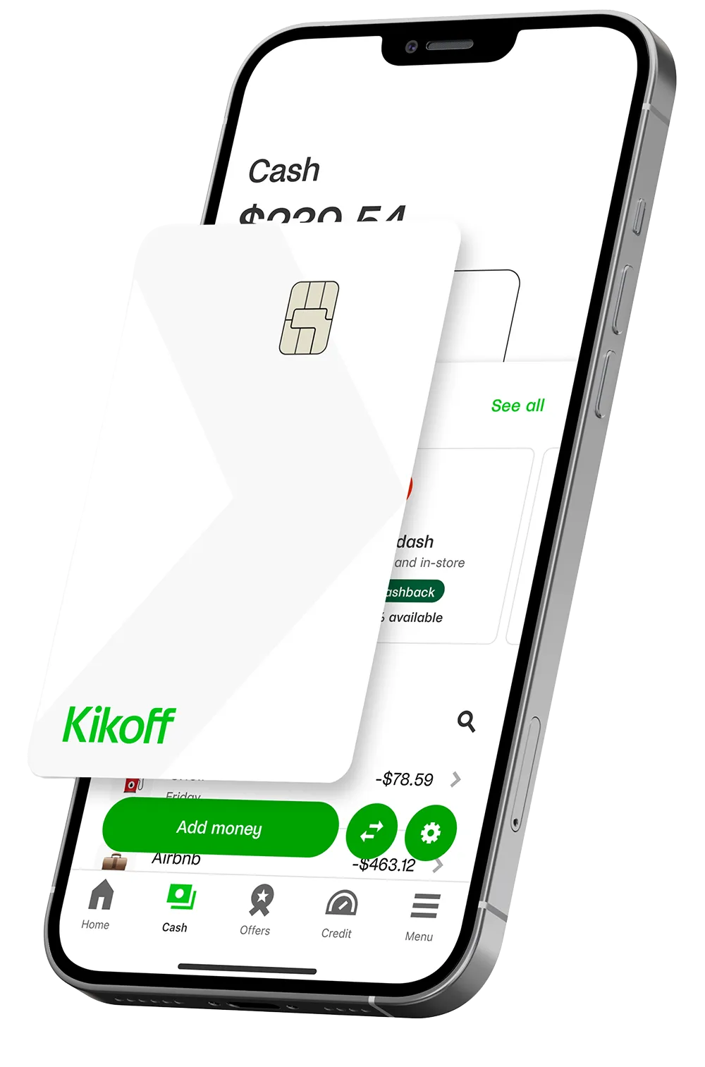 With qualifying direct deposits, overdraw $20 per month on your card without fees. The amount will increase the longer you keep your banking service with Kikoff, up to $200 per month.iii